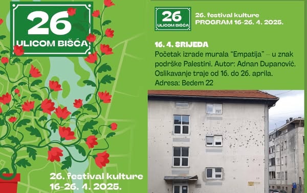 Bihać je danas postao domaćin jedne od svojih najdugovječnijih kulturnih manifestacija – 26. izdanju manifestacije „Ulicom Bišća“. Tokom narednih deset dana, građani će imati priliku uživati u bogatom programu koji uključuje promocije knjiga, pozorišne predstave za djecu i odrasle, koncerte, radionice i po prvi put – izradu murala.