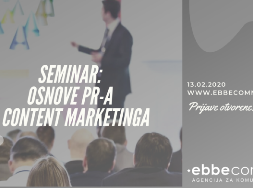 Ne propustite, treći po redu seminar “Osnove PR-a i content marketinga” u organizaciji Agencije za komunikacije EBBE COMMS.