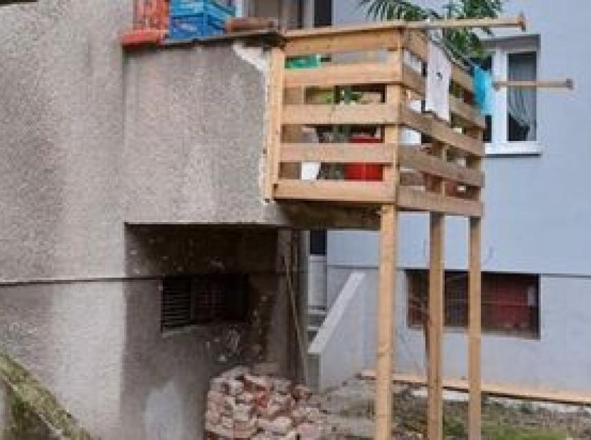 Kako se vidi sa fotografija koje su se proširile internetom, navedeni vlasnik je uklonio prednji zid balkona i na njega pričvrstio drvenu konstrukciju koja je oslonjena na tri stuba ukopana u zemlju. Da udvostruči površinu novog balkona pomogla mu je i činjenica da se stan nalazi u prizemlju.