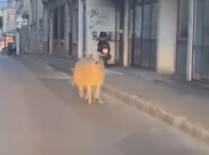 Naime, u užem dijelu grada, ovan koji je vjerovatno bio namijenjen za “Kurban” je pobjegao sa auto prikolice i polu vezanih nogu bježao gradom, javili su čitatelji.