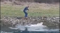 U Otočcu je jedno prase odlučilo da neće postati pečenica, pa je uronilo u rijeku Gacku dok ju je njen vlasnik vidljivo nervozan lovio sa svih strana, ali bezuspješno.
