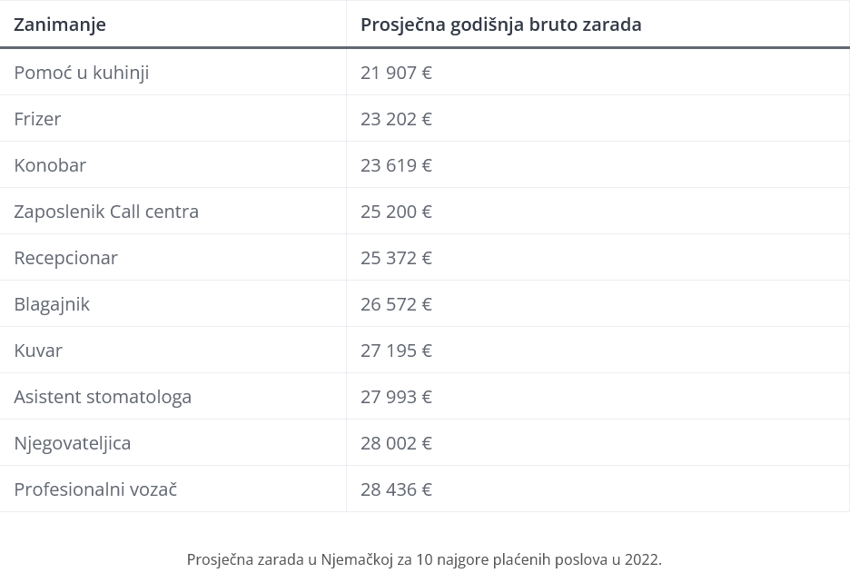 U nastavku vam predstavljamo 10 zanimanja koja su najmanje plaćena u Njemačkoj sa prosječnim godišnjim zaradama: