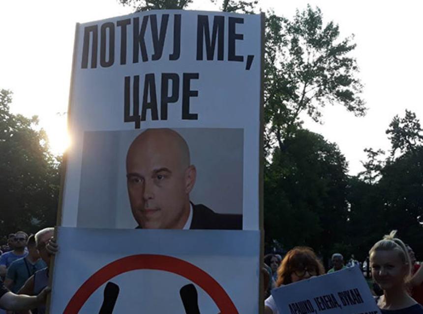 Građani su nosili i transparente na kojima piše “Potkuj me, care”, aludirajući na aferu “Potkivanje” čiji je jedan od aktera predsjednik VSTV-a Milan Tegeltija, “Igore, gradi škole, a ne bazene na kružnom toku”, “Povoljno dijelimo prekršajne prijave na najatraktivnijim lokacijama u gradu” i drugi.