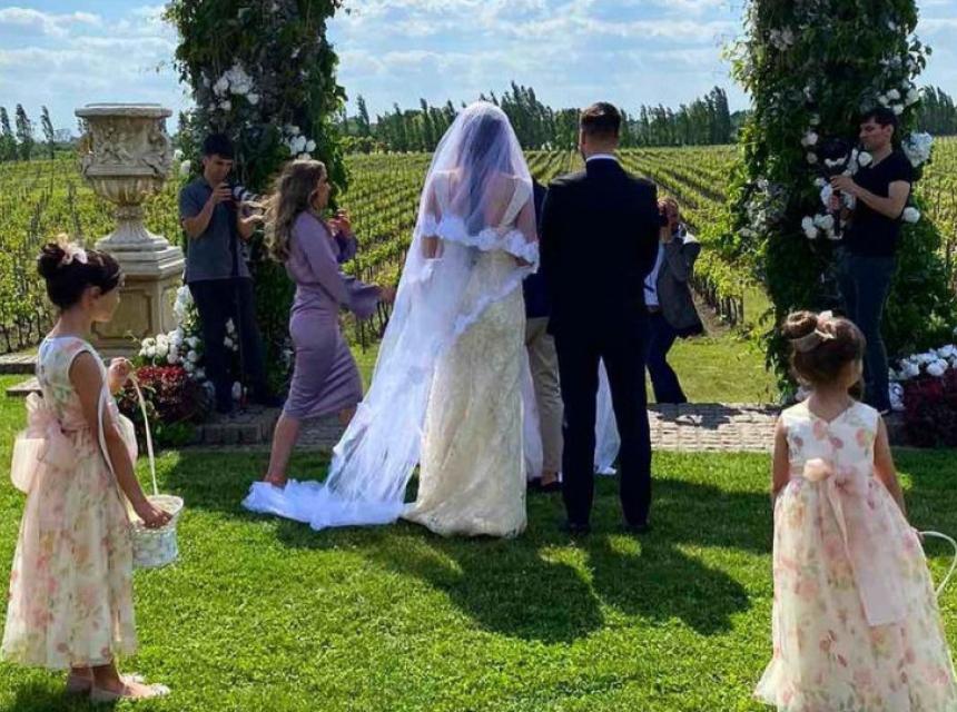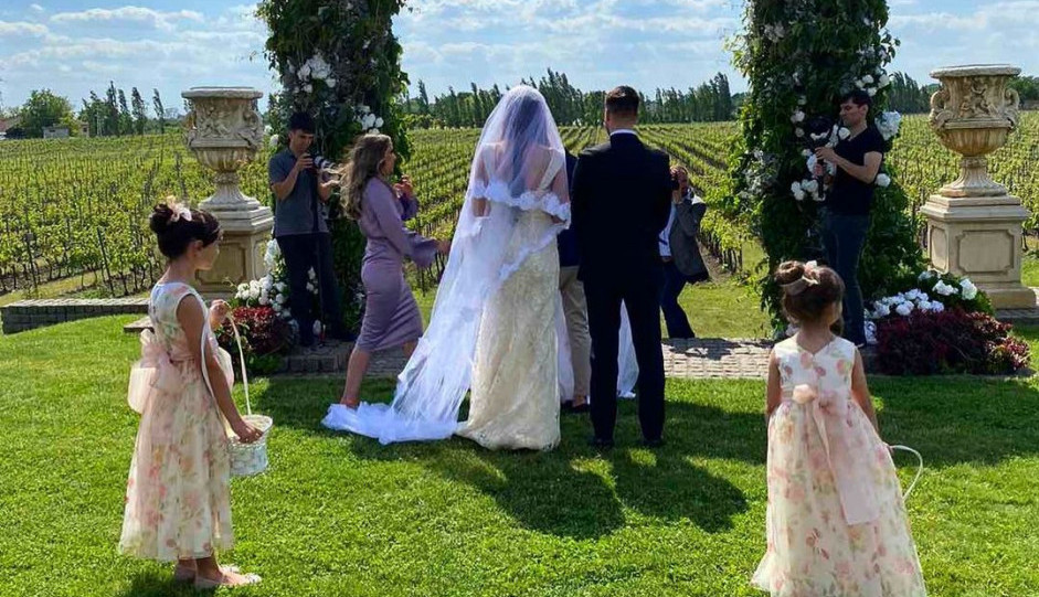 Aleksandra je nosila usku vjenčanicu i, uprkos poznoj trudnoći, izgledala je savršeno. Intimnoj ceremoniji održanoj na obodu jednog vojvođanskog vinograda prisustvovali su samo najbliži. Dio atmosfere na svom Instagramu otkrila je mladoženjina tetka, pjevačica Ilda Šaulić.