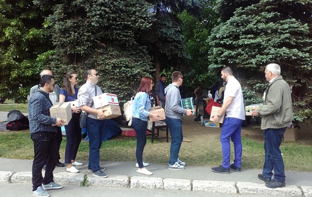 Građani koji migrantima pomažu u parku prekoputa Vijećnice, naglasili su da su ugodno iznenađeni pomoći sindikata te da mnogo znači.