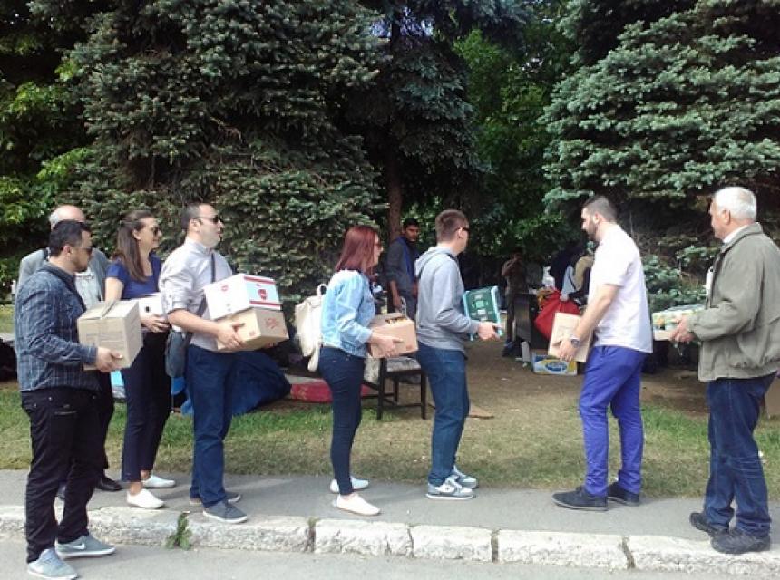 Sekcija mladih Saveza samostalnih sindikata (SSS) BiH i Kantonalni odbor Saveza za Kanton Sarajevo danas su, u okviru obilježavanja Prvog maja, podijelili pakete hrane i higijenskih potrepština migrantima koji se nalaze u parku prekoputa Vijećnice.