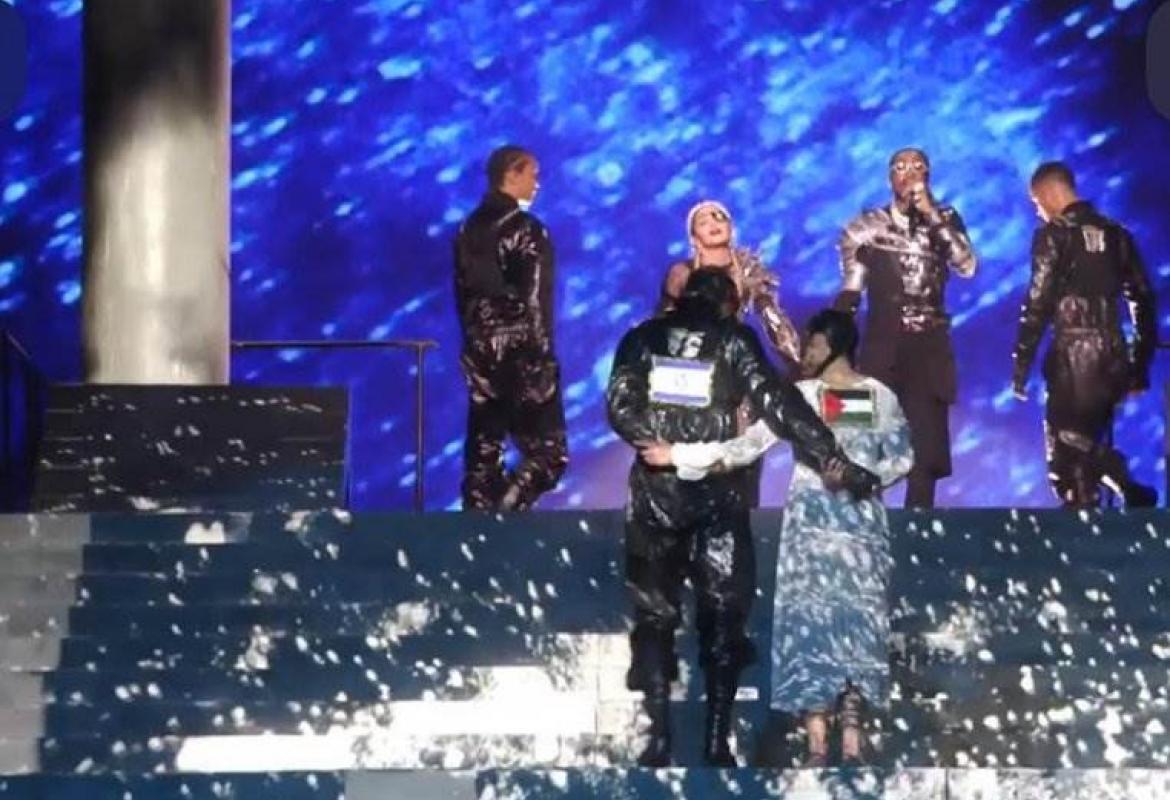 Ostalo je navodno nejasno da li je bila svjesna činjece da će neki njeni plesači uskoro izaći na binu u odjeći s izraelskim i palestinskim zastavama na leđima, preneo je AFP.