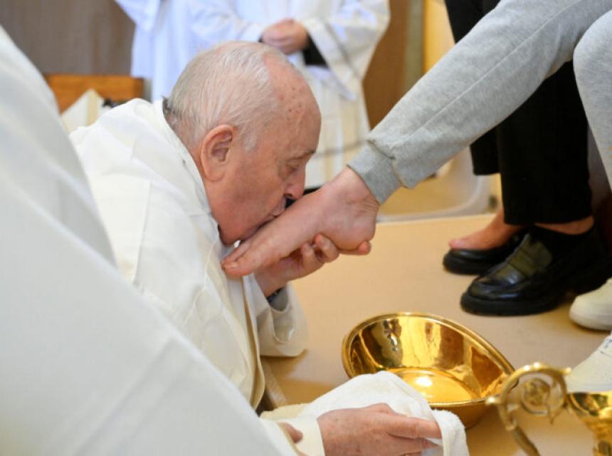 Papa Franjo je u četvrtak oprao noge dvanaest žena u zatvoru u Rimu tokom ceremonije kojom se naglašava poniznost. To je prvi put da je papa oprao noge samo ženama tokom ove posebne godišnje službe, promijenivši tako višegodišnju tradiciju.