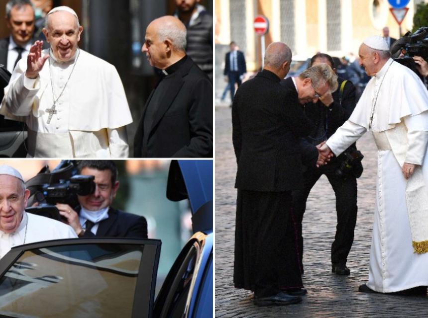 Papa je napustio Vatikan prvi put u više od mjesec dana kako bi služio misu u skoro praznoj crkvi nekoliko ulica dalje u povodu Nedjelje Božjeg milosrđa ili Malog Uskrsa.
