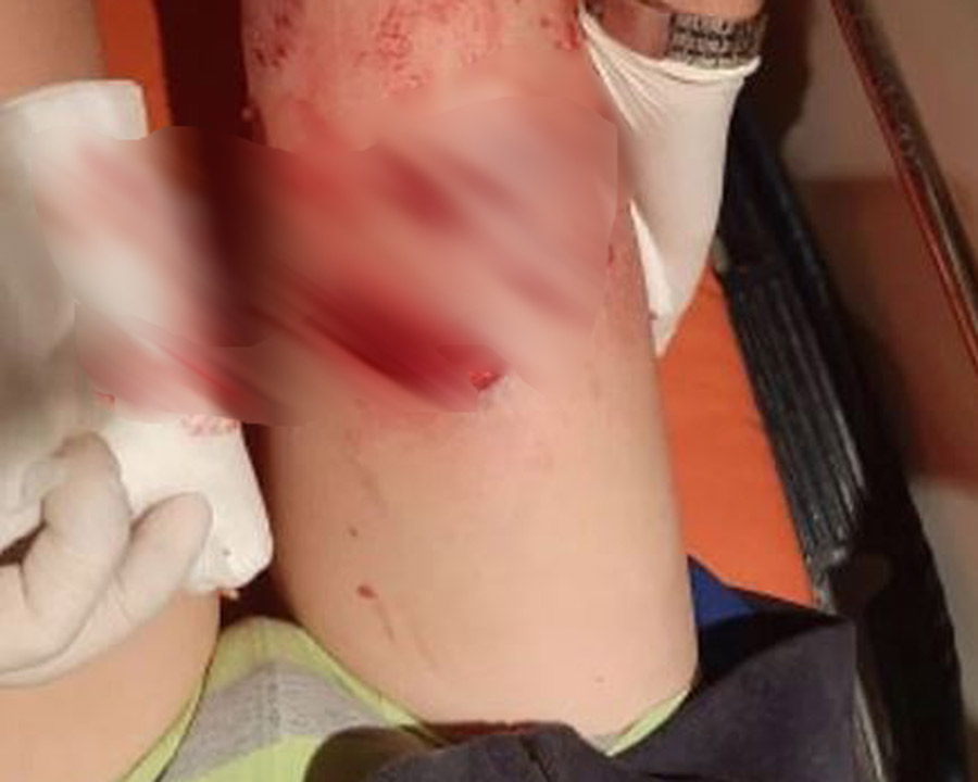 Oborio ga je na zemlju i počeo ujedati pri tome mu nanijevši povrede na butini. Fotografije dovoljno govore koliko je situacija bila opasna.