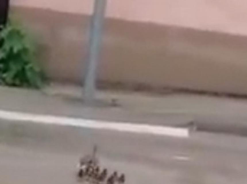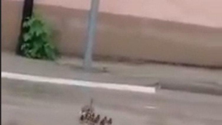 Mama patka, zalutala vjerovatno iz obližnjeg kanala ili korita Une, povela je svoje pačiće preko pješačkog prijelaza. Zahvaljujući tome što je pokriven sa dvadesetak centimetara vode, svi su ga zajedno mogli lako preplivali, prenosi Dnevni avaz.