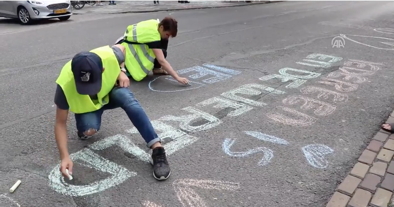 Grupa, poznata pod imenom "Za mir 010", nekoliko sati prije nego se trebao održati skup Pegide, ispred džamije su postavili transparent s porukom mira i ljubavi, a na ulaz bogomolje su donijeli cvijeće.