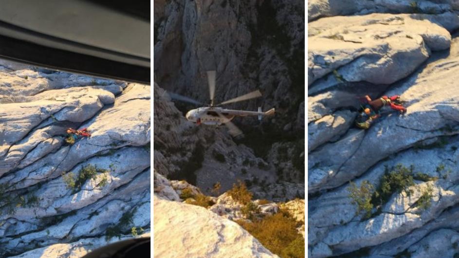 Dodaju kako je ekipa letača spašavatelja poletila iz Splita i pri dolasku se iz lebdećeg helikoptera do unesrećene spustila liječnica HGSS-a i već za 15 minuta unesrećena se u podvjesu helikoptera prevezla do helidroma u Starigrad Paklenici nakon čega su prebačeni u helikopter i naknadno na aerodrom u Zadru gdje je predana timu Hitne medicinske pomoći.