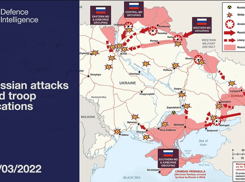 Rusija je od početka invazije lansirala više od 500 projektila, a 92 posto ruskih unaprijed pripremljenih borbenih snaga već se nalaze unutar Ukrajine. Međutim, on navodi da je zračni prostor iznad Ukrajine i dalje neosvojen.