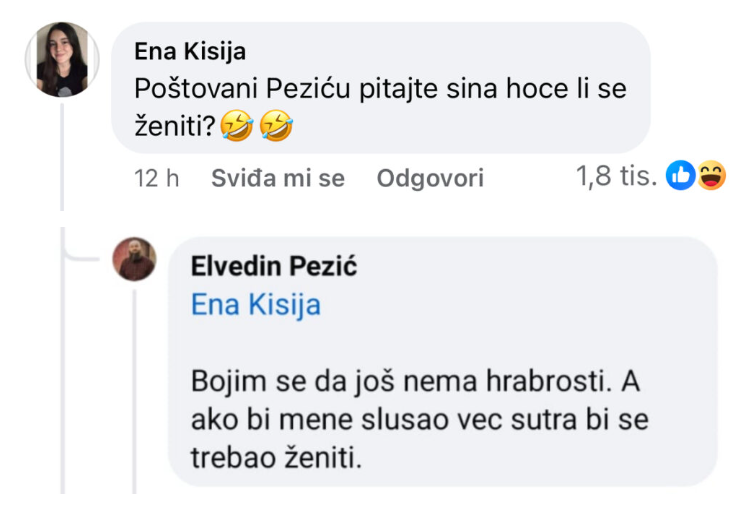 Djevojka Ena Kisija ostavila je zanimljiv komentar na njegovoj objavi, a također i Pezić je uzvratio komentarom.