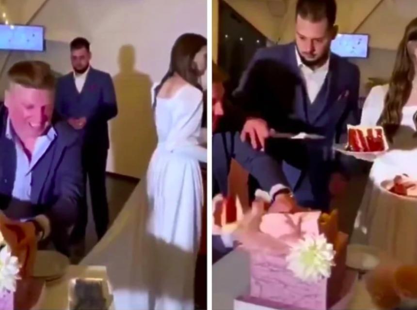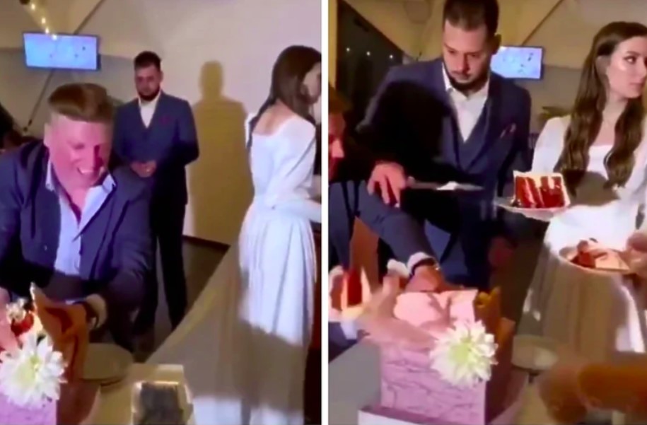 Naime, tokom ceremonije rezanja torte, jedan je pijani gost rukama raskomadao tortu i zatim je počeo bacati na mladence.