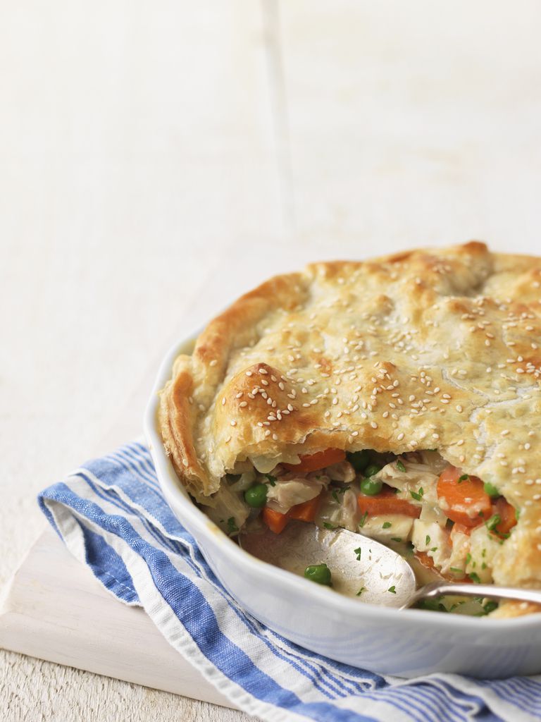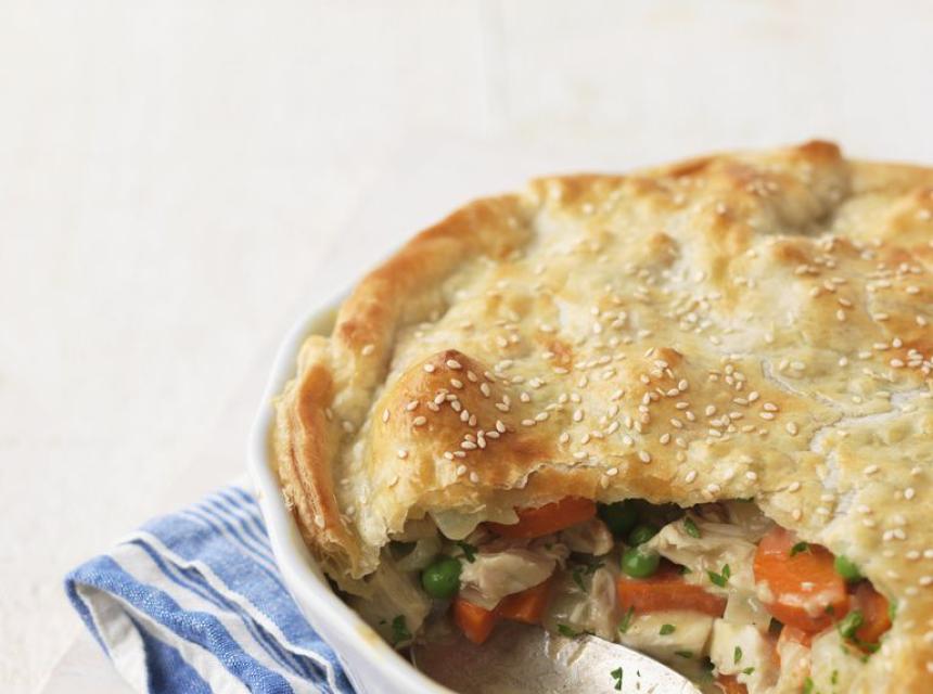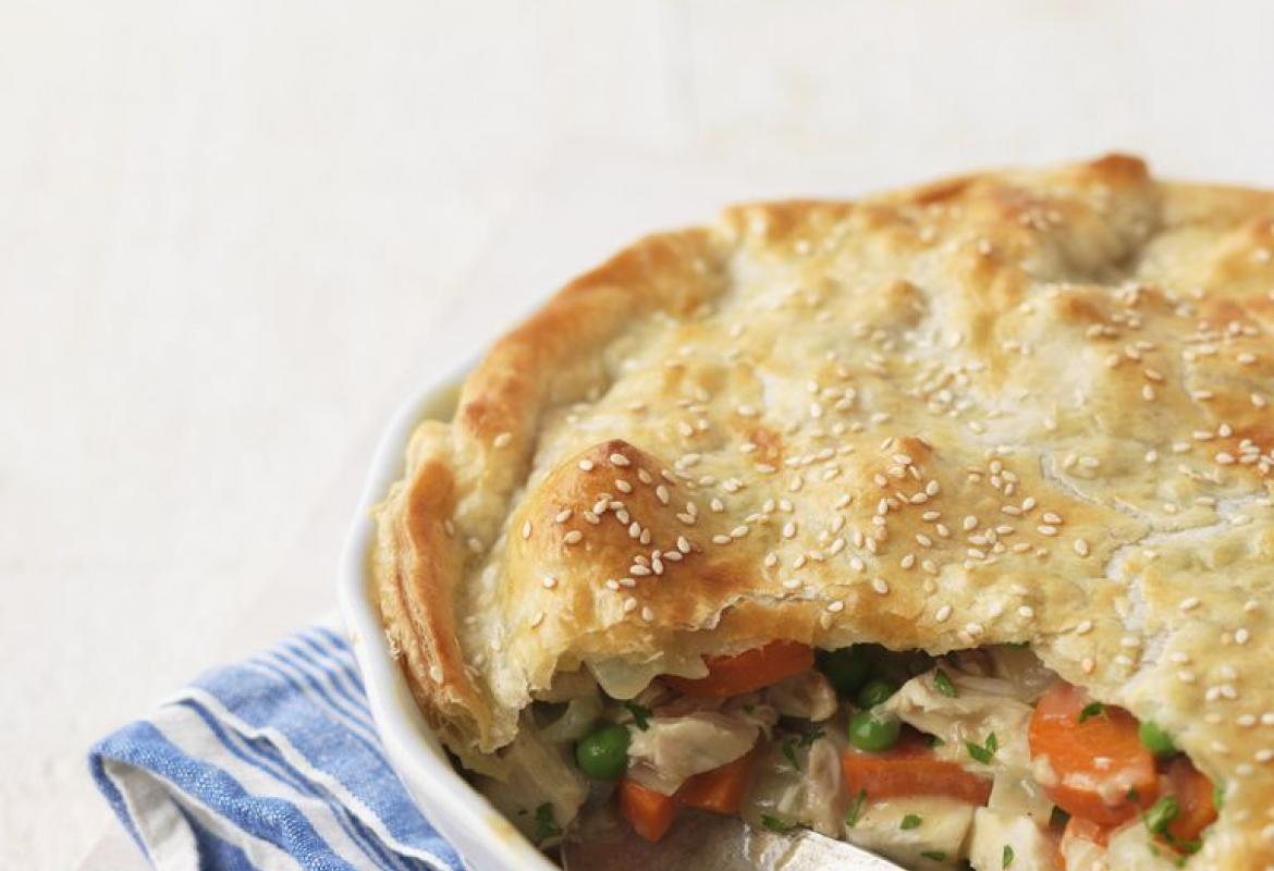 - Staviti smjesu u posudu za pečenje. Podijeliti lisnato tijesto na pola i prekriti smjesu i premazati mlijekom. Peći 25-30 minuta ili dok ne postane zlatno-smeđe, kako prenosi Vaša kuharica.