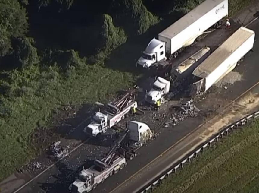 Fotografije sa lica mjesta koje su napravili službenici autoputa Floride pokazuju brdo prosutih kutija piva i limenki od kojih se put jedva vidi.
