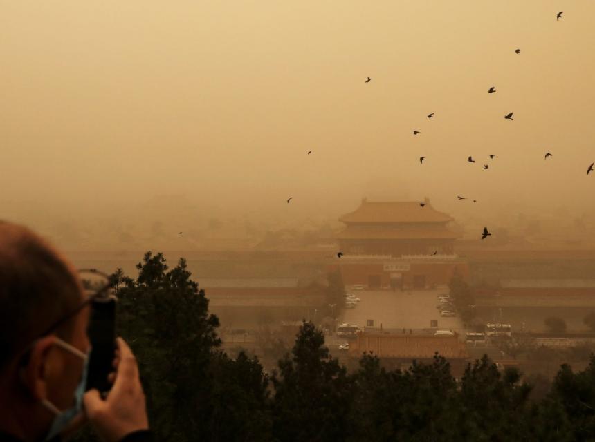 Peking se suočava s redovnim pješčanim olujama u ožujku i travnju zbog blizine pustinje Gobi, kao i krčenja šuma i erozije tla u sjevernoj Kini.