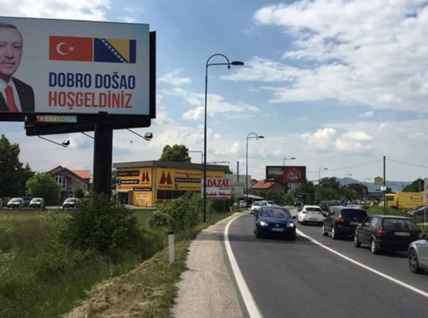 Na plakatu je Erdoganu iskazana dobrodošlica na bosanskom i turskom jeziku.