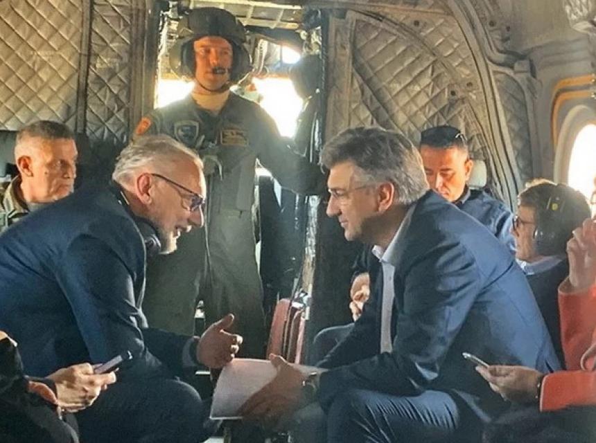Europski čelnici helikopterom su nadlijetali granično područje kako bi vidjeli stanje na terenu. S njima je bio i ministar unutarnjih poslova Davor Božinović, koji će sutra predsjedati izvanrednim sastankom ministara unutarnjih poslova EU-a na tu temu.