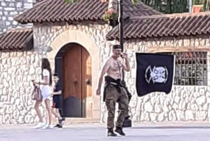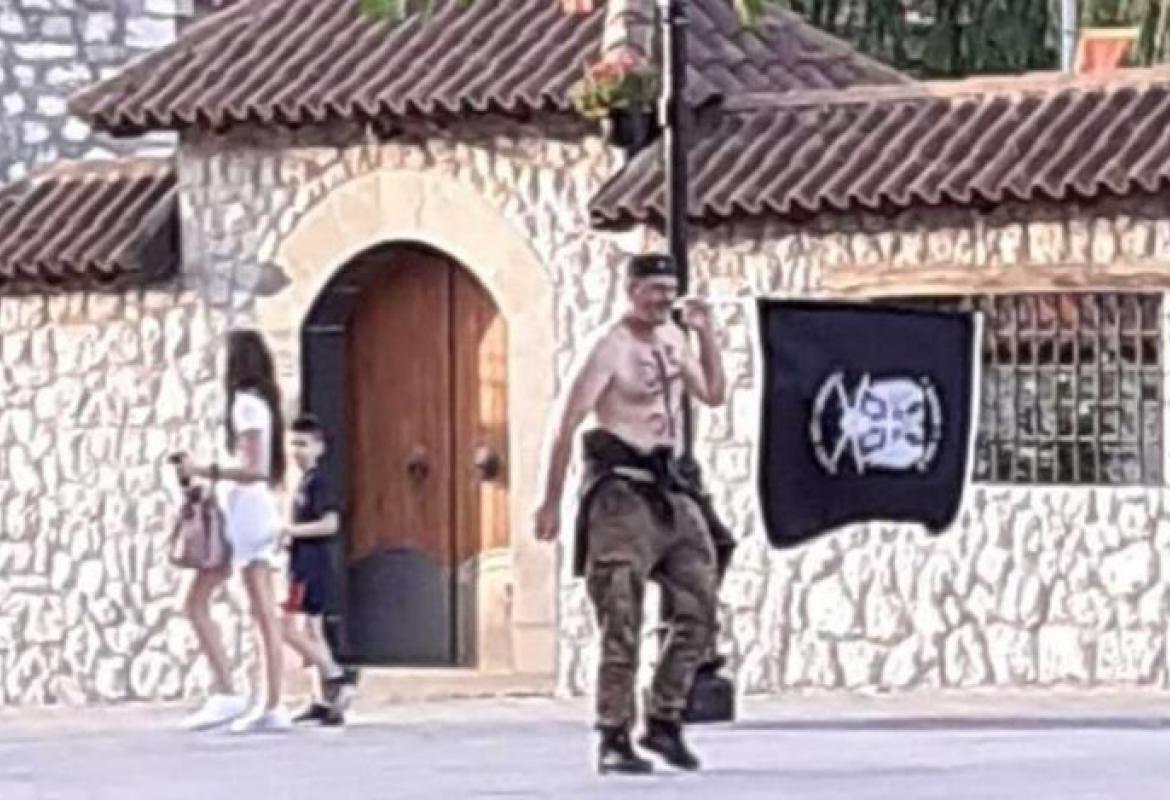 Internetom od preksinoć kruži fotografija čovjeka koji sa zastavom četničkog pokreta šeta pored Husein-pašine džamije u Pljevljima.