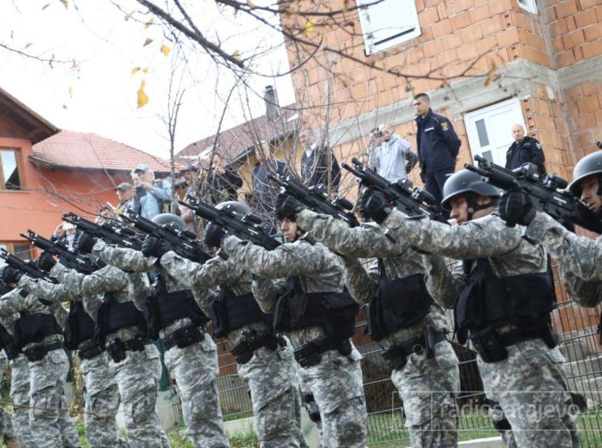 Pripadnici MUP-a Kantona Sarajevo izveli su počasnu salvu ispucavši po tri metka u zrak odavši tako priznanje ubijenim kolegama za njihovu hrabrost i požrtvovanost.