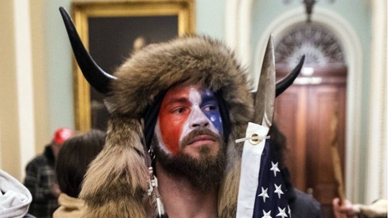 Jacob Anthony Chansley, drugim imenom Jake Angeli, gol do pasa i s bizonskim rogovima na glavi, koji je privlačio fotografe i kamere postavljene posvuda na Kapitolu, uhićen je i optužen za nezakonit upad i nasilno ponašanje na Kapitolu, navodi se u priopćenju ministarstva.