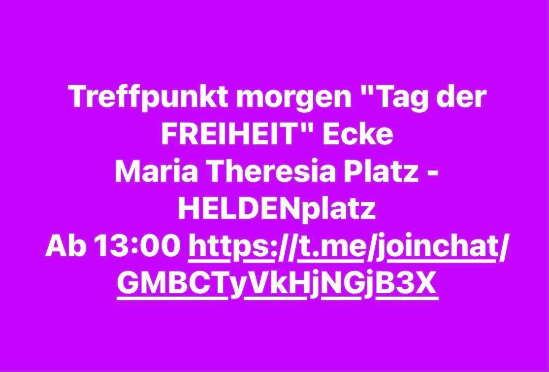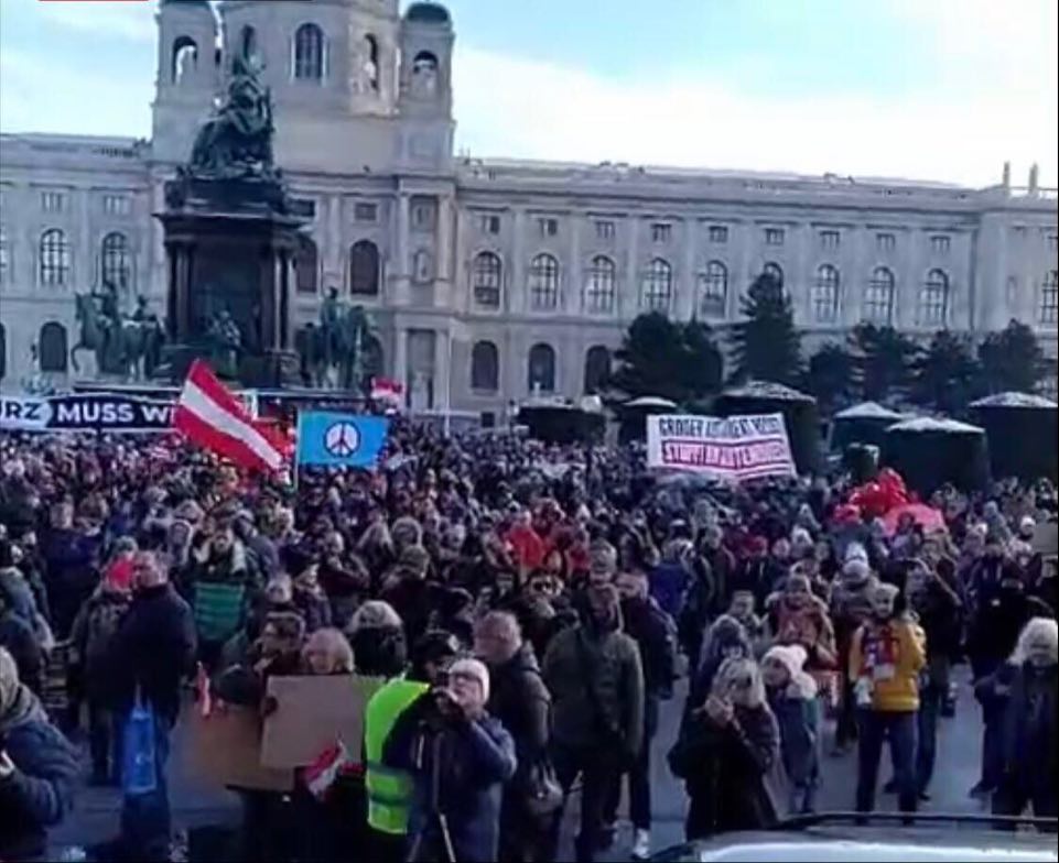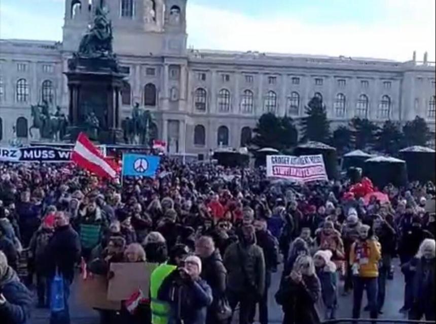 U neposrednoj blizini ovoga mjesta su registrirana još dva prosvjeda: „Za slobodnu Austriju“ na Maria-Theresien-Platz s (do 5.000 prosvjednika), pogledajte slike sa te lokcije, i hod po bečkom Ringu pod motom „Za obranu svojih prava od proizvoljno nametnutih i protuustavnih mjera” s do 10 000 sudionika od 13 do 18 sati, javlja Radio OO.