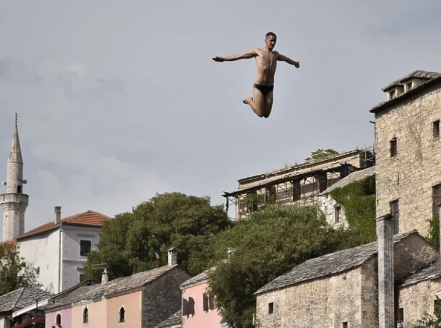 U Mostaru su počeli tradicionalni 455. visinski skokovi sa Starog mosta, a za titulu najboljeg skokom sa luka UNESCO-ovog spomenika u ledenu Neretvu takmiči se 32 skakača iz regiona.