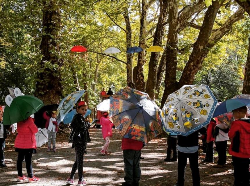 Najmlađi Bišćani danas su uživali u bojama jeseni i gelenderskim kišobranima koji su ukrasili ovo nekada kultno bihaćko okupljalište.