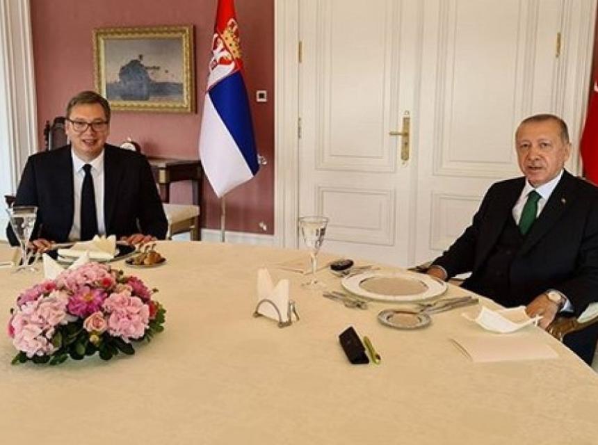 Radni ručak predsjednika Srbije Aleksandra Vučića i turskog predsjednika Redžepa Tajipa Erdoana počeo je nešto posle 13.30 sati. Prve fotografije objavljene su na Vučićevom oficijelnom Instagram profilu. Predsjednik Srbije je uoči sastanka izjavio da je za Srbiju važno da ima odlične odnose i komunikaciju sa Turskom, jer je riječ o jednoj od sve važnijih sila u svijetu.