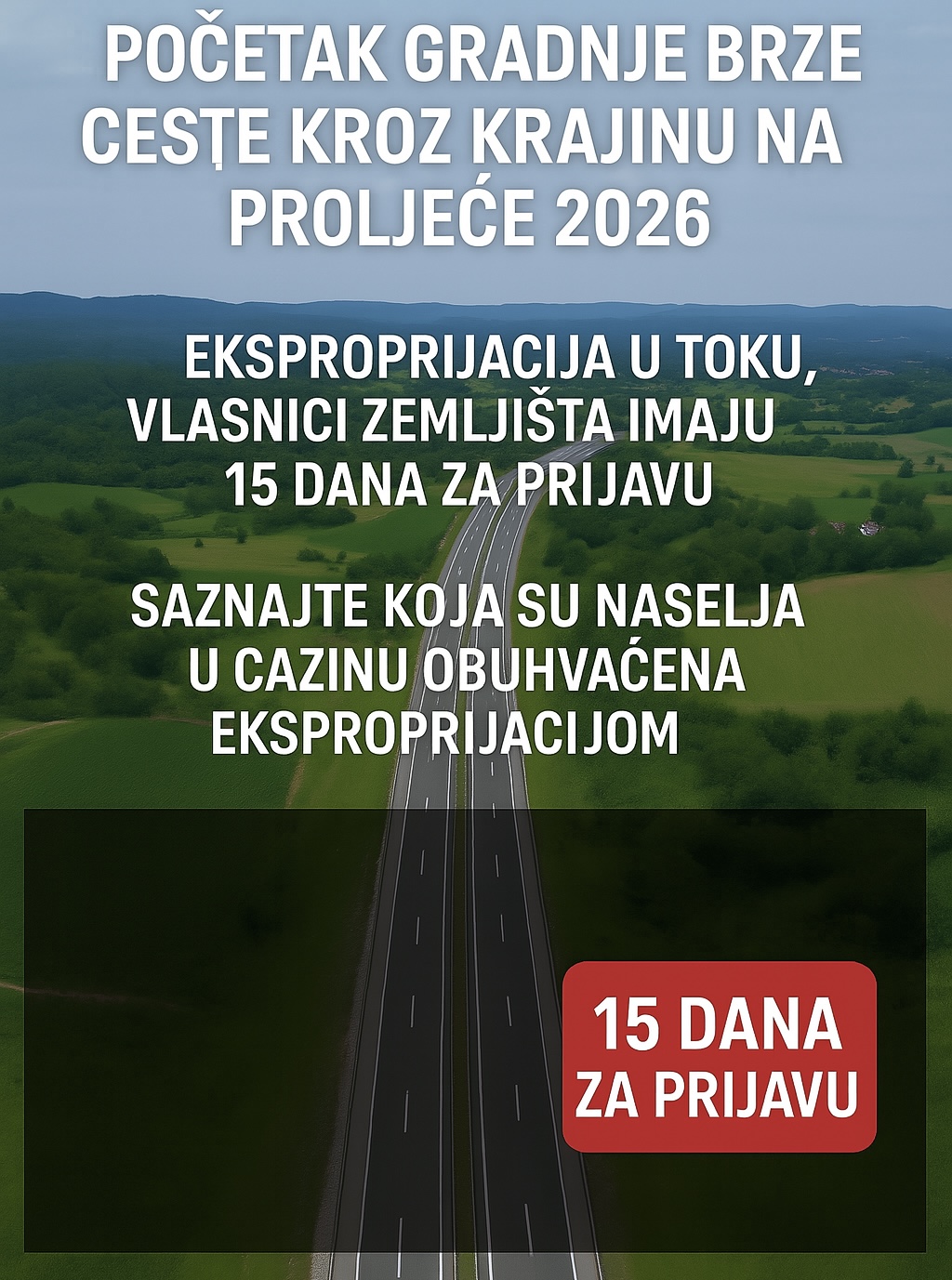 Javna eksproprijacija u toku: vlasnici iz Cazina pozvani da se izjasne