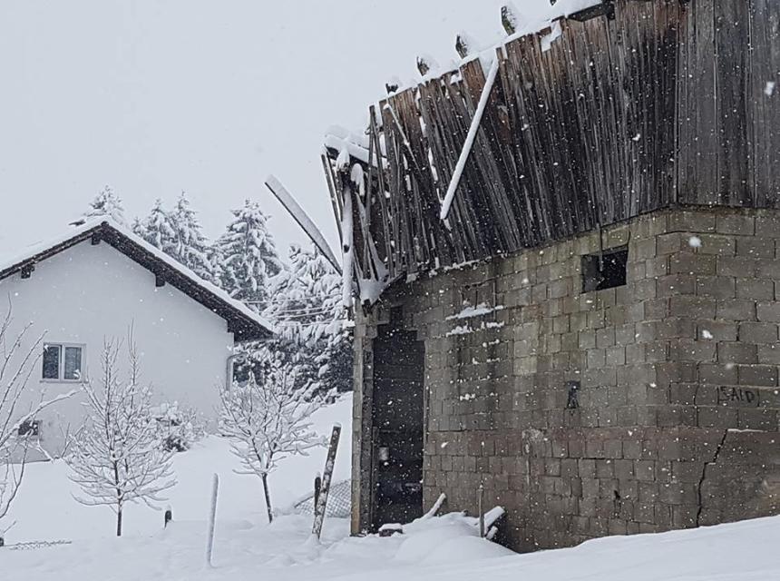 Kako naš portal saznaje, zbog velike težine snježnog prekrivača u MZ Stijena (Podgredina), danas je došlo do urušavanja krova na pomoćnom objektu (štala), a koja je u vlasništvu porodice Memić.