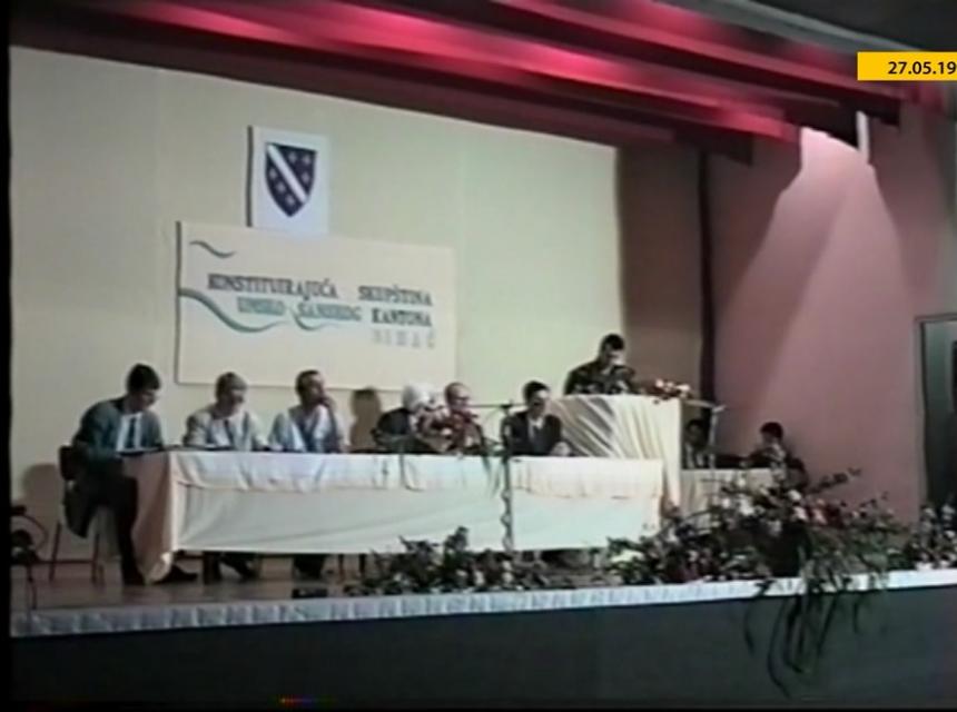 U jeku najtežih dana za Bihać i Okrug, u maju ratne 1995. godine političke strukture donose odluku o sazivanju konstituirajuće sjednice Skupštine USK čime se kreće u realizaciju državnih dogovora o budućem ustroju države. Historijskim odlukama donesenim 27. maja na sjednici Skupštine Okrug se preimenuje u USK u čiji sastav prvobitno ulaze i dijelovi prijedorskog područja. Za predsjedavajućeg Skupštine imenovan je Adem Borić a prvi čovjek kantona postao je Mirsad Veladžić. Posebno emotivno bilo je obraćanje Irfana Ljubijankića, ministra vanjskih poslova BiH. Prenoseći pozdrave i podršku Krajišnicima od predsjednika države Alije Izetbegovića, Ljubijankić je govorio o aktuelnim dešavanjima u zemlji najavljujući skori kraj rata...