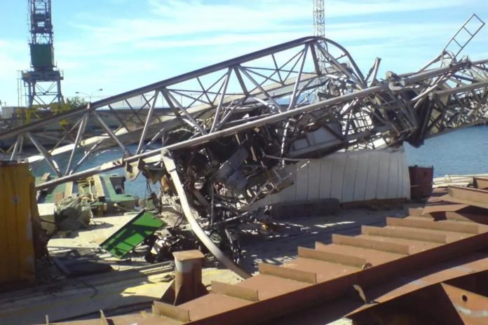 Dizalica, koja je imala čeličnu mrežu na kuki za polaganje, pala je na gradilište i na put, a građevinski radnik koji je stajao u zgradi smrtno je stradao.