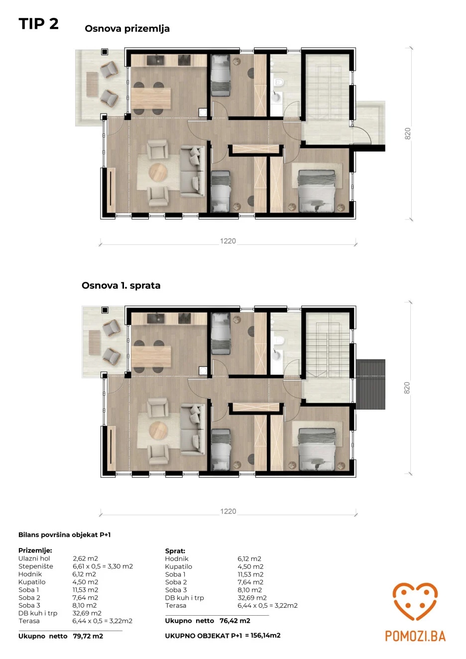 Novo naselje će obuhvatiti dvije vrste stambenih objekata, prilagođene broju domaćinstava koja će u njima živjeti.