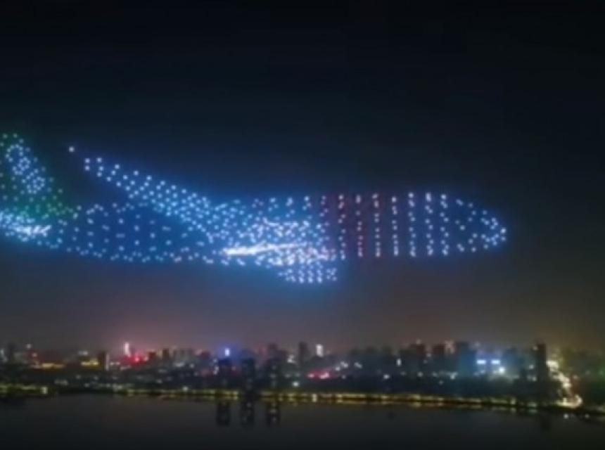 Kako izgleda kada 800 dronova formira oblik aviona na noćnom nebu? To su vidjeli svi koji su prisustvovali avio konvenciji u Nančangu u Kini.