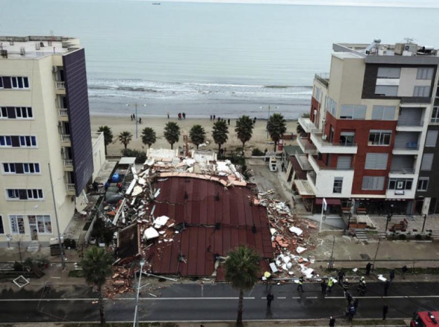Kontroliranom eksplozijom danas je na plaži u Draču srušen šestospratni hotel koji je teško oštećen u razornom zemljotresu 26. novembra.