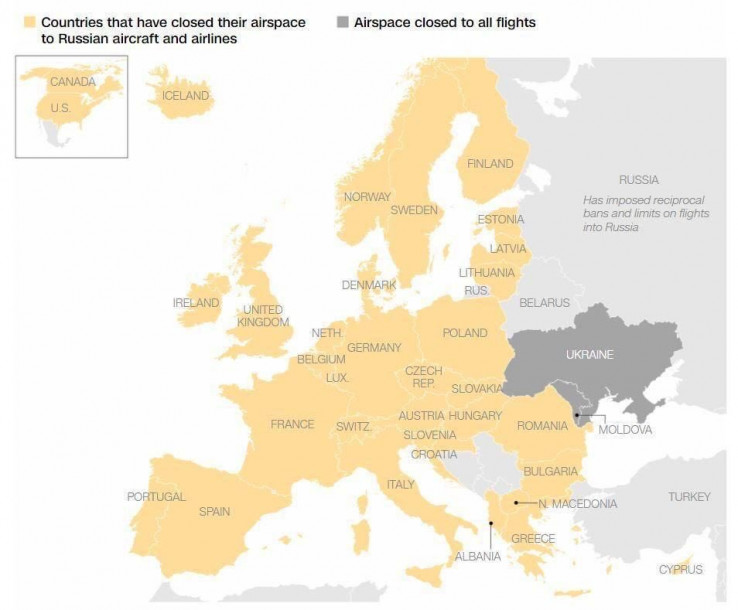 Objavljena je mapa zemalja koje su zatvorile zračni prostor za Rusiju.