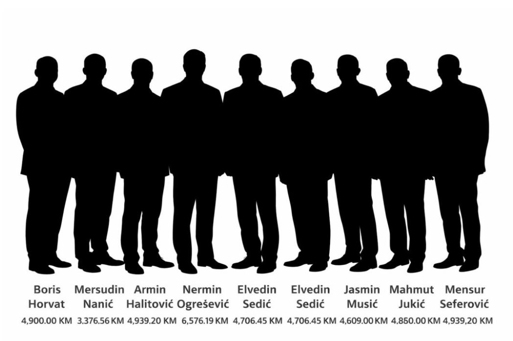 Najveći iznos primanja ima Nermin Ogrešević i to 6.576,19 KM, zatim Armin Halitović 4.939,20 KM, Mensur Seferović 4.939,20 KM.
