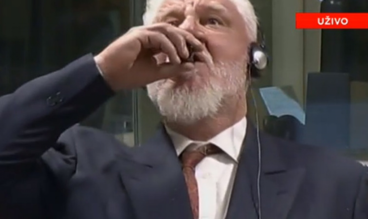 Slobodan Praljak popio je tekućinu nepoznatog sastava nakon što mu je izrečena drugostepena presuda, odnosno potvrđena kazna od 20 godina zatvora na Haškom triunalu. Njegova odbrana je rekla da je njihov klijent popio otrov.