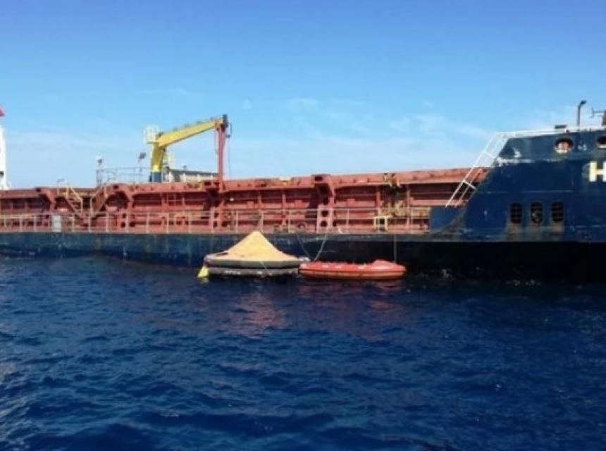 Tegljenje turskog teretnog broda "Haksa", koji je u nedjelju ujutro doživio havariju u arhipelagu otoka Jabuka, zaustavljeno je u noći na ponedjeljak jer je morska voda ponovno počela prodirati u trup broda, pa su petorica članova posade, među njima i kapetan koji su bili ostali na brodu, ipak prevezeni u Split gdje su se pridružili preostaloj osmorici članova posade.