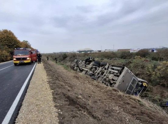 Najmanje dvije osobe su poginule, a oko 80 putnika zadobilo je teže ili lakše povrede u teškoj saobraćajnoj nesreći koja se danas dogodila na putu između Sremske Mitrovice i Jarka. Autobus firme "Sirmiumbus", koji je bio pun putnika, iz još neutvrđenih razloga se prevrnuo.