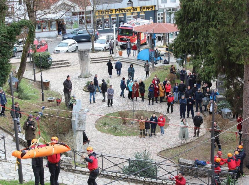 Organizirana je pokazna vježba spašavanja koja je realizirana na centralnoj lokaciji od zgrade općine prema starom gradu i gradskoj džamiji.
