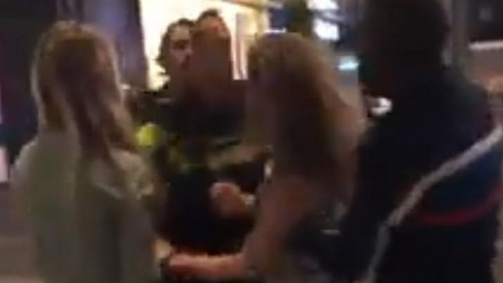 Šokantan snimak u kojem se vidi kako policajac nakon komešanja prvo grubo odguruje mlađu djevojku, da bi je zatim, kada je ustala sa ulice i krenula ka njemu, i brutalno udarao pesnicama, prenosi Blic.rs.