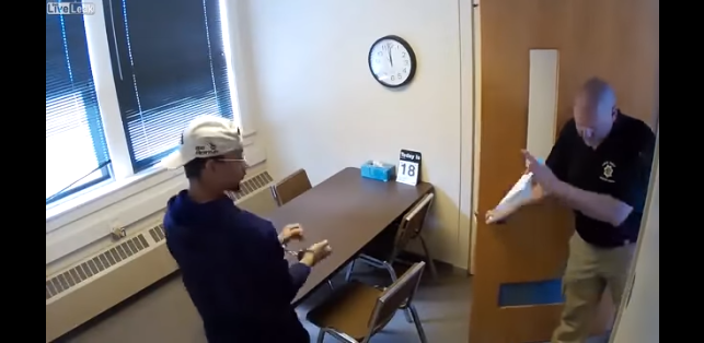 Švarclou je isti dan kad je uhapšen završio u sobi za ispitivanje, a na snimku, koji se sad pojavio na LiveLeaku, vidi se kako bježi iz sobe kad su je detektivi napustili. Oko 14 minuta kasnije detektiv se vraća u sobu i nalazi je praznu.