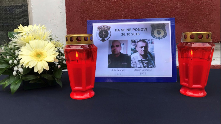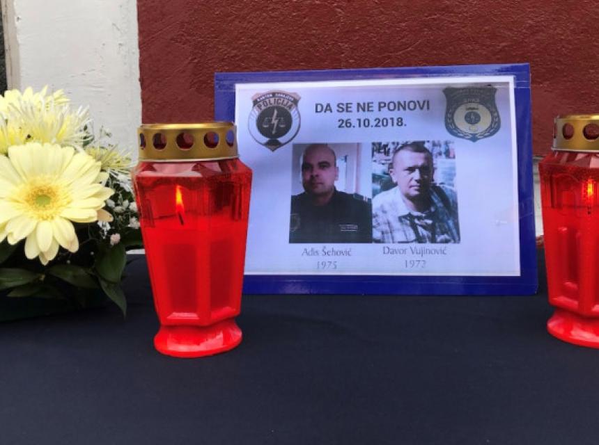 U znak sjećanja na ubijene kolege Adisa Šehovića i Davora Vujinovića, sarajevske policajce koji su ubijeni u petak u naselju Alipašino Polje u Sarajevu, travnički policajci su danas ispred zgrade Policijske uprave postavili slike ubijenih i svijeće.
