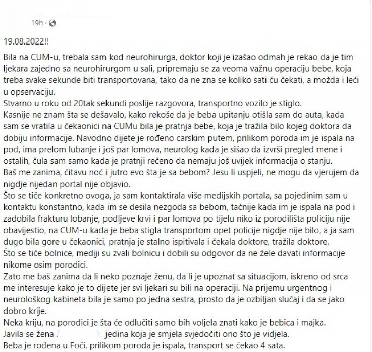 Slučaj je u žižu javnosti dospio zahvaljujući društvenim mrežama i svjedokinji ovog događaja na Kliničkom centru u Sarajevu.