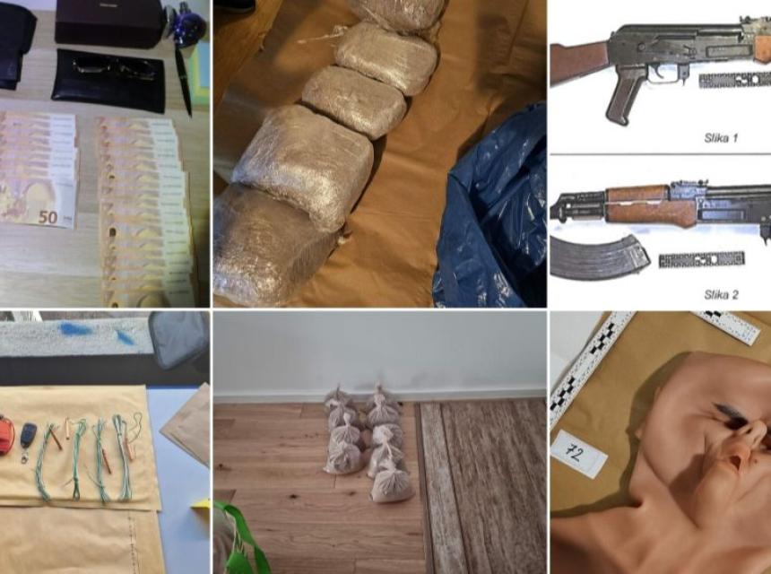 Policajci su na području Ljubljane izvršili tri pretresa kuće, tokom kojih su oduzeli više elektronskih uređaja - mobilnih telefona, SIM kartica i slično, više od 10 kilograma heroina i kilogram kokaina, novac i više komada raznih vrsta oružja s prigušivačima, piše RTV Slo.